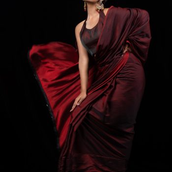 Rich Emerald Green Satin Saree with Bronze Pendants