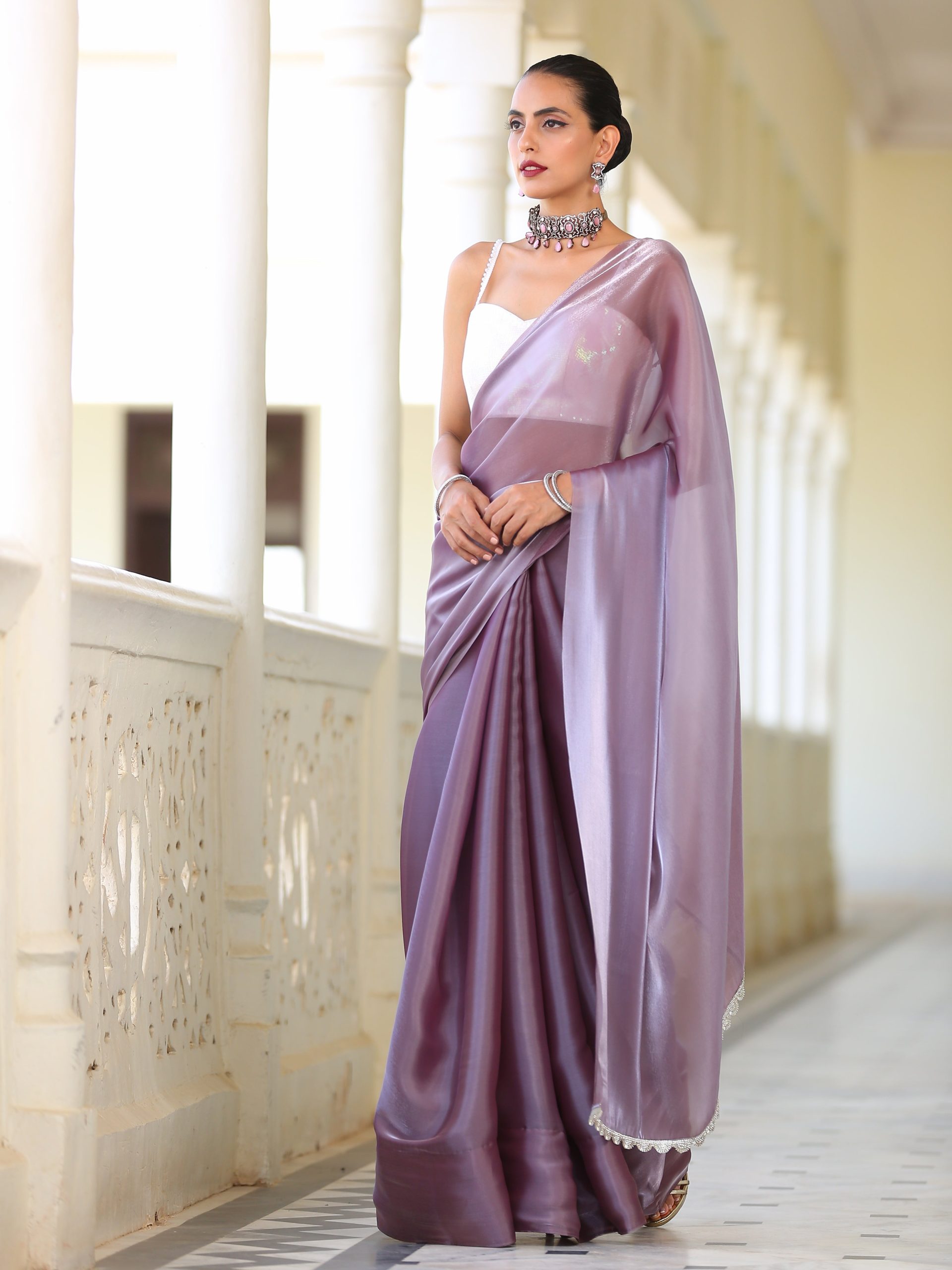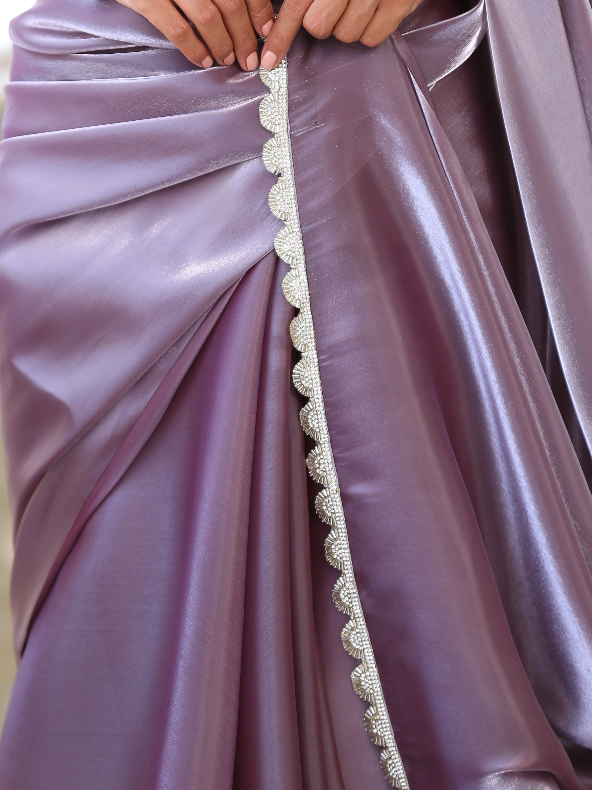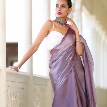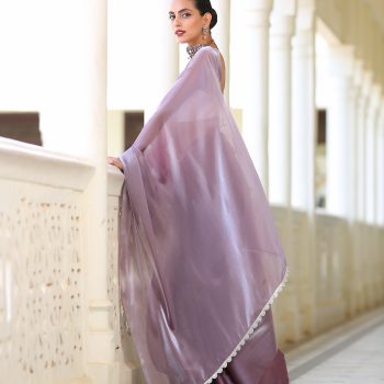 Colour: An elegant Mauve Purple with a Silver glaze all over to give it a flowy silken look when draped over the body.