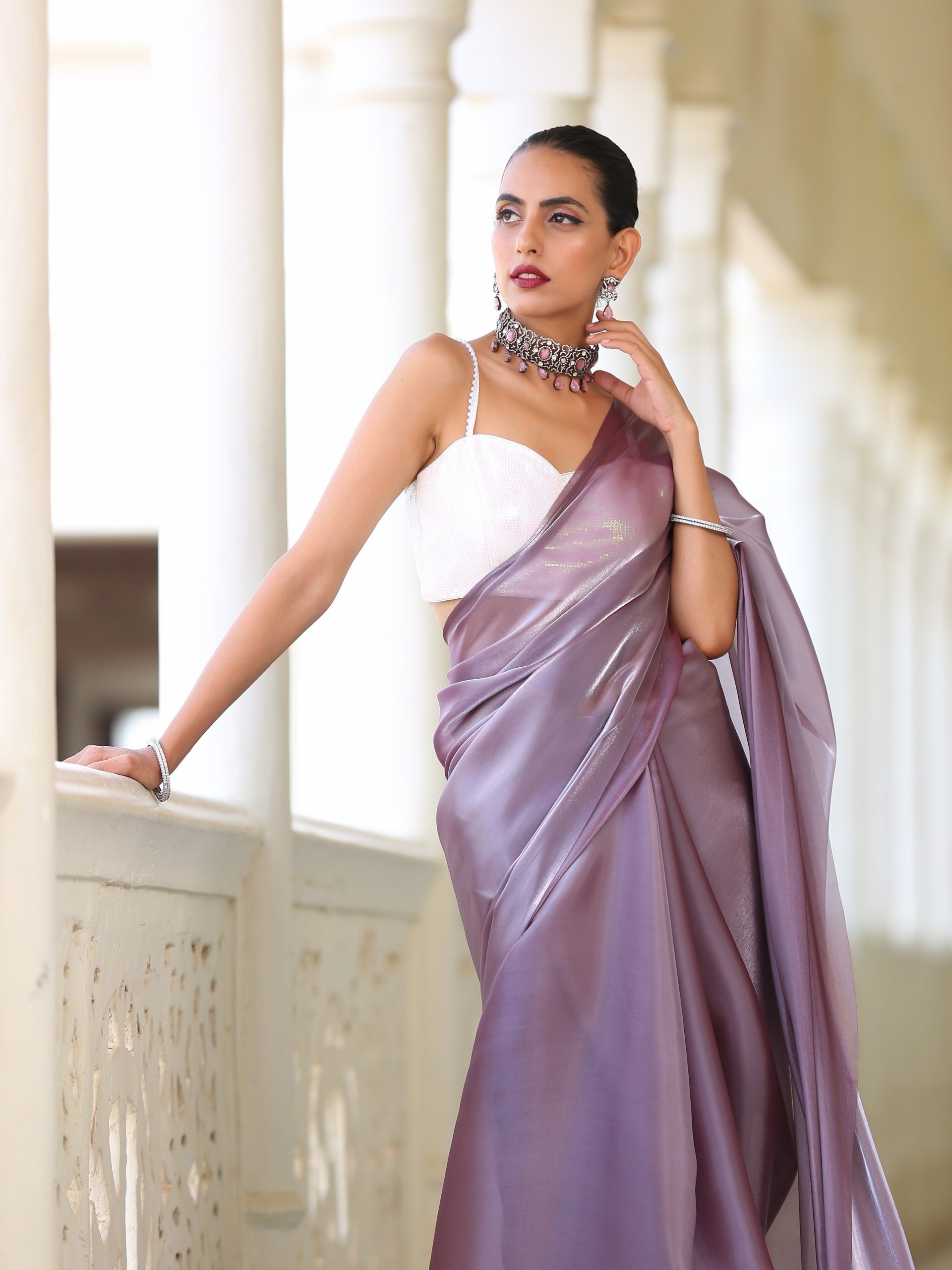 Metallic Glorious Saree which is RARE in Mauve Silver !!